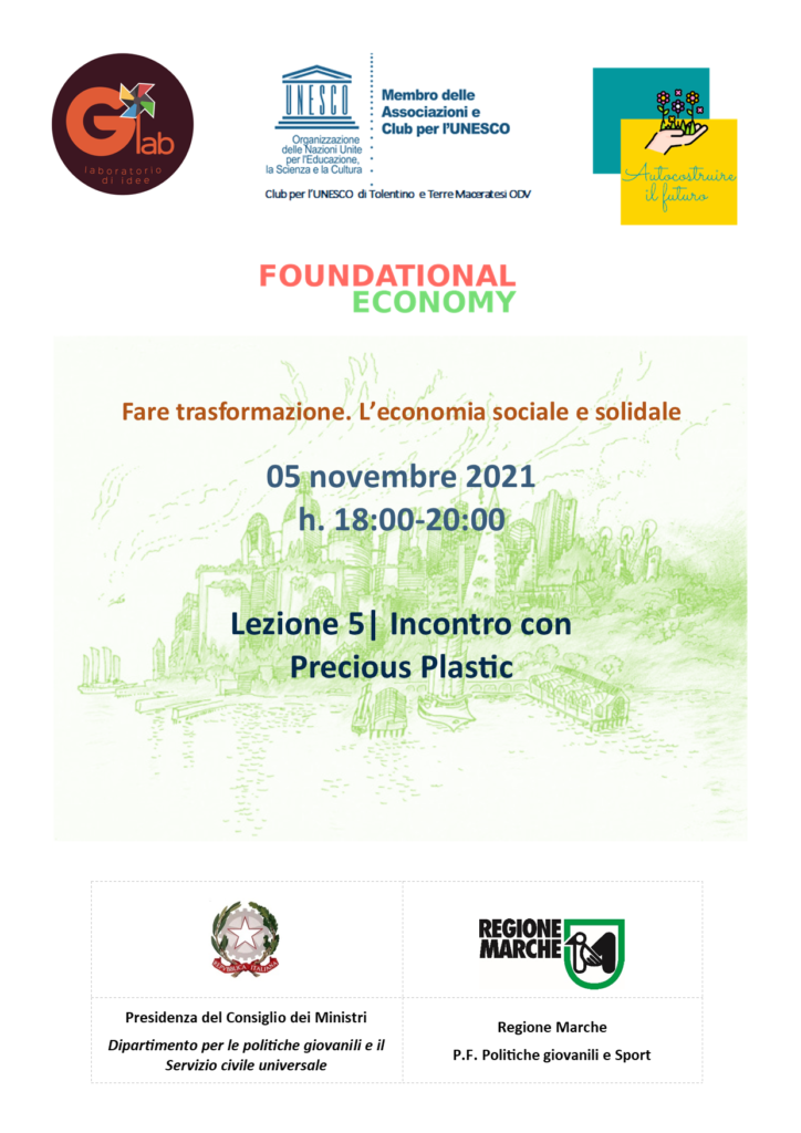 05/11/2021- Video della Lezione 5 del Corso: FARE TRASFORMAZIONE. L’ECONOMIA SOCIALE E SOLIDALE- l’esperienza di Precius Plastic “Un big bang per il riciclo della plastica”