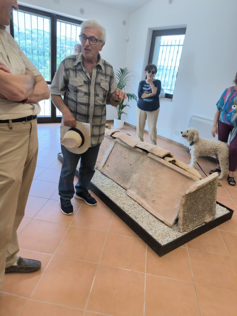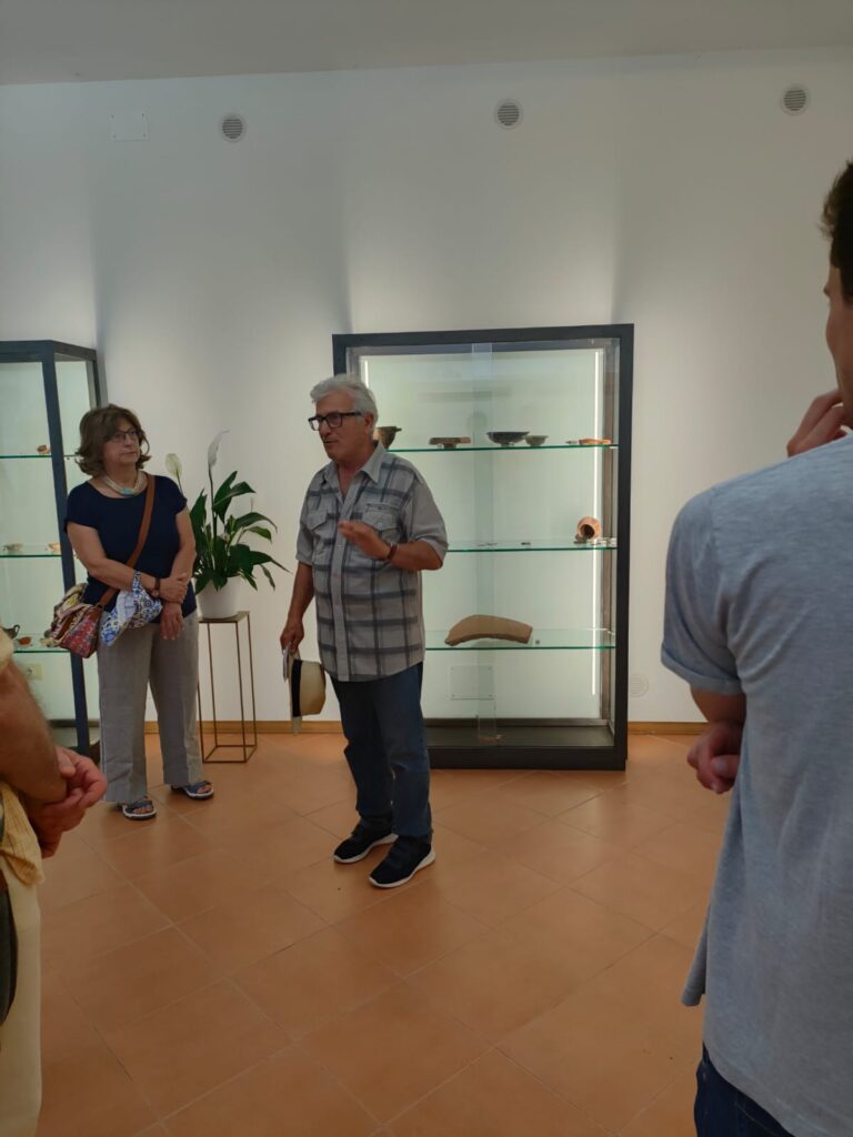 Nonostante la calura, un folto gruppo di interessati alla Storia locale ha potuto ascoltare le spiegazioni del Pro. Enzo Catani che ha illustrato nel dettaglio il valore storico/scientifico e il significato socio-economico sia dei reperti in mostra nell’antiquarium sia della porzione della villa romana rinvenuta ai bordi del lago di Caccamo.