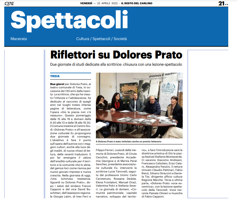 22-23 Aprile 2022 Treia celebra Dolores Prado