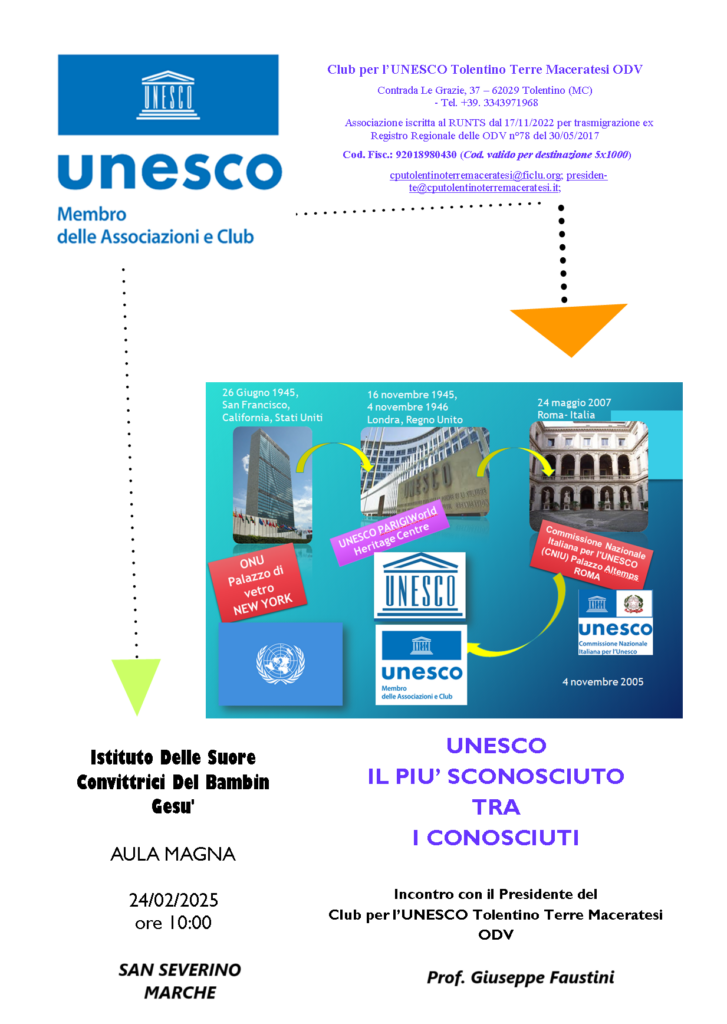 Il Presidente Giuseppe Faustini invitato a parlare dell‘UNESCO agli studenti dell‘ Istituto Delle Suore Convittrici Del Bambin Gesu’di San Severino Marche
