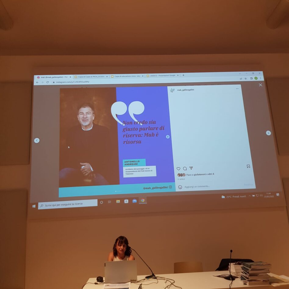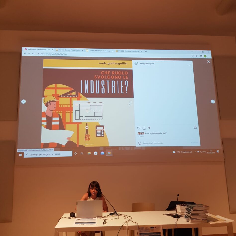 Le tante conoscenze apprese, gli incontri vissuti, le esperienze fatte sono diventate materia di racconto. Anche grazie agli incontri di storytelling e comunicazione con esperti del settore, studenti e studentesse hanno realizzato contenuti creativi e prodotti culturali per la rielaborazione, come keynotes, video, social media, progetti di ebook e magazine on line, prodotti non solo per fare memoria di quanto vissuto ma anche da utilizzare per promuovere il territorio. Come la pagina Instagram @mab_galileogalilei, una strategia di comunicazione dinamica, collaborativa, propositiva.
