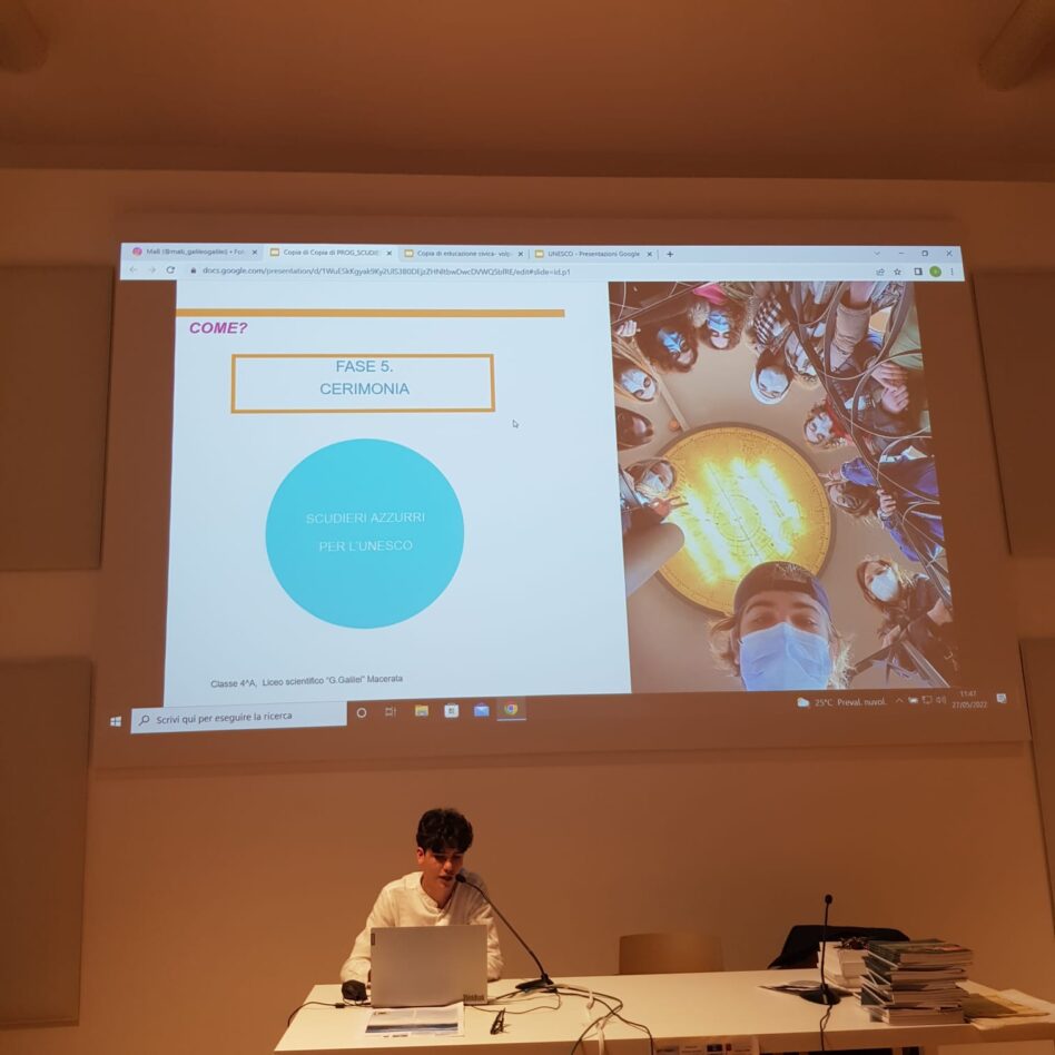 27/05/2022-Cerimonia di consegna degli attestati “Alfieri Azzurri per l’UNESCO” ai liceali del Galilei di Macerata