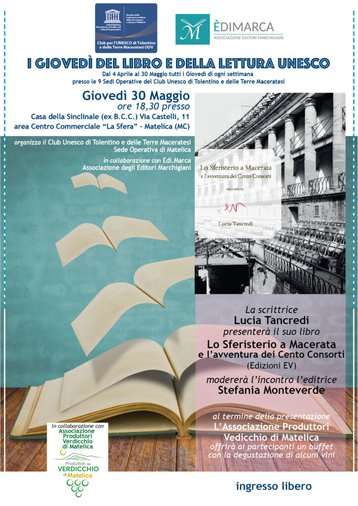È la storia raccontata dal libro “Lo Sferisterio e l’avventura dei cento consorti” della scrittrice Lucia Tancredi e pubblicato da ev casa editrice. È stato presentato a Matelica nella sede operativa del Club Unesco delle Terre Maceratesi, la Casa della Sinclinale Camerte, tappa della Rassegna “I giovedì del libro e delle lettura” promossi dal Club UNESCO insieme a Èdi.Marca, Associazione delle case editrici marchigiane. Ad aprire l’evento i saluti di Raimondo Turchi, presidente della Sede Operativa, e Giuseppe Faustini, Presidente del Club per l’Unesco di Tolentino e delle Terre Maceratesi. È poi intervenuta Stefania Monteverde, vicepresidente del Club Unesco, cofondatrice e direttrice editoriale di ev casa editrice. Ha introdotto la casa editrice e la scrittrice Lucia Tancredi che ha incantato il pubblico con la storia dello Sferisterio a Macerata raccontando di duecento anni fa, quando nella profonda provincia italiana, quasi cento cittadini decisero la grande impresa: costruire lo sferisterio più bello d’Italia. Non solo un luogo destinato al gioco della palla a bracciale, ma un tempio laico dove esercitare una cittadinanza attiva. I Cento Consorti, molti dei quali erano progressisti, liberali e carbonari, rappresentavano un Ottocento generoso, pieno di grandi passioni, ideali e spirito di gruppo. Il genio dell’architetto Ireneo Aleandri, allora solo ventottenne, realizzava il monumento secondo l’estetica neoclassica, nella persuasione che la bellezza potesse salvare il mondo da violenza e ignoranza. Il risultato è una microstoria appassionante che attraversa due secoli della storia d’Italia. Una storia estremamente attuale perché è la ricerca non di un bene appannaggio di privilegiati ma di un bene comune, esempio di una civiltà progressista di cui fare memoria per rinnovare lo spirito d’impresa e la passione civica.